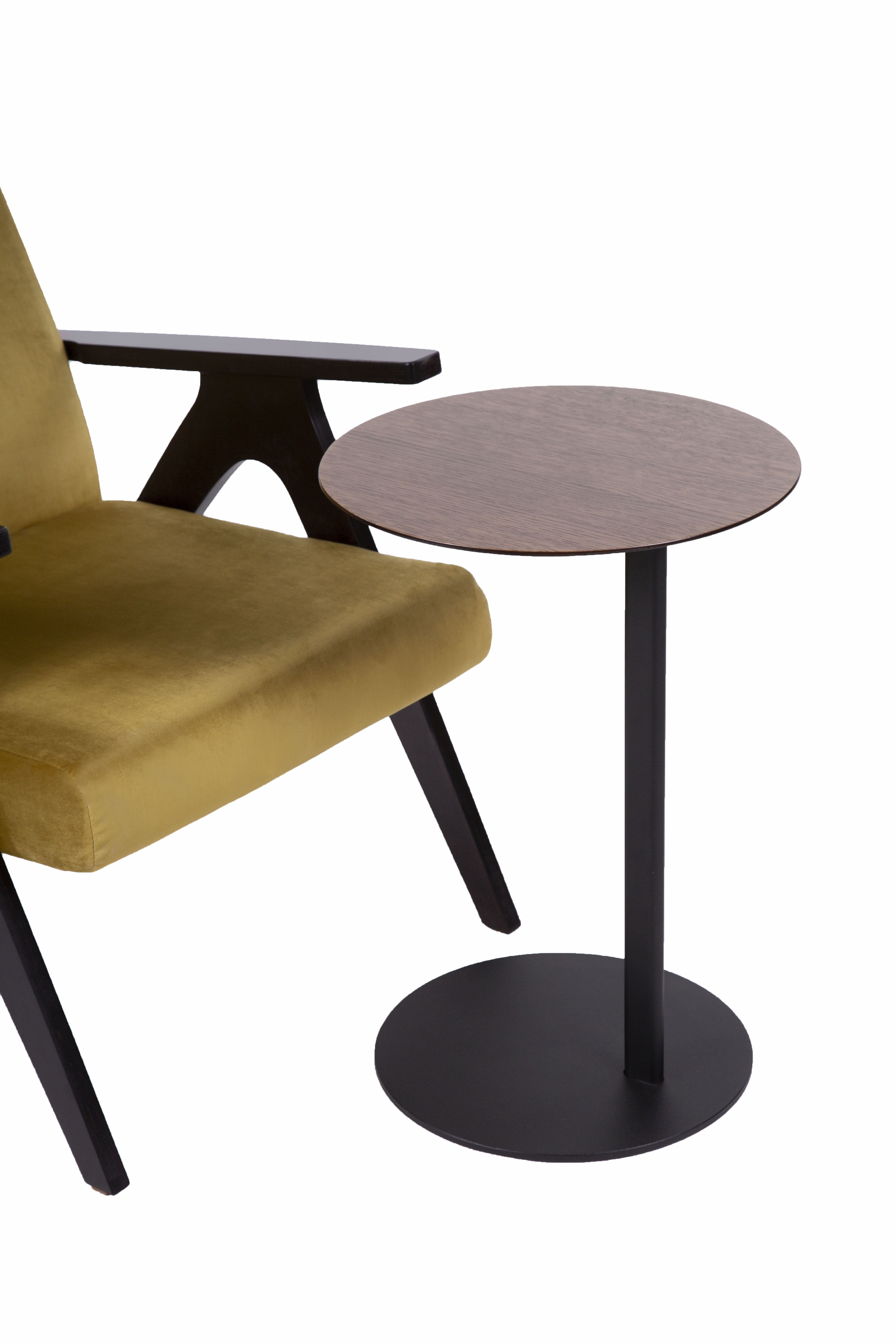 Круглая столешница на устойчивой основе идеально подходит для сервировки кофе, работы с ноутбуком или размещения личных вещей. Компактный размер и мобильность позволяют легко интегрировать его в любое пространство — от номера до лаунж-зоны.